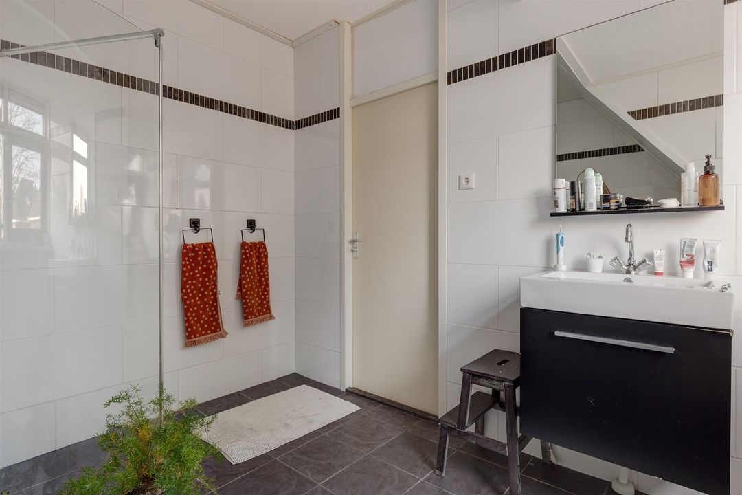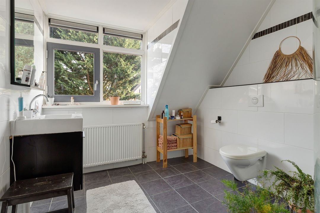 1e verdieping: overloop, twee slaapkamers van ongeveer 13 m2 en 8m2, ruime badkamer (ongeveer 8 m2) met douche wastafel en toilet, inloopkast vanuit de gang te betreden.