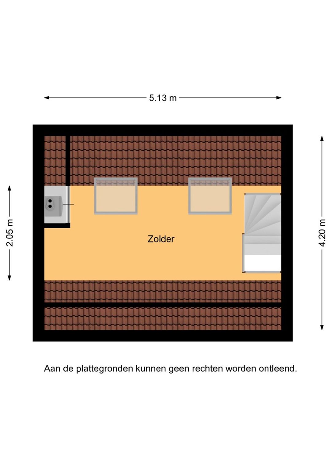 2e verdieping: door middel van een vaste trap komt u uit op de zolder waar nog een extra slaapkamer gesitueerd is van ± 22 m2.