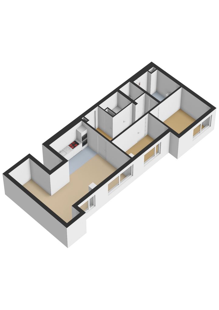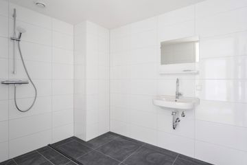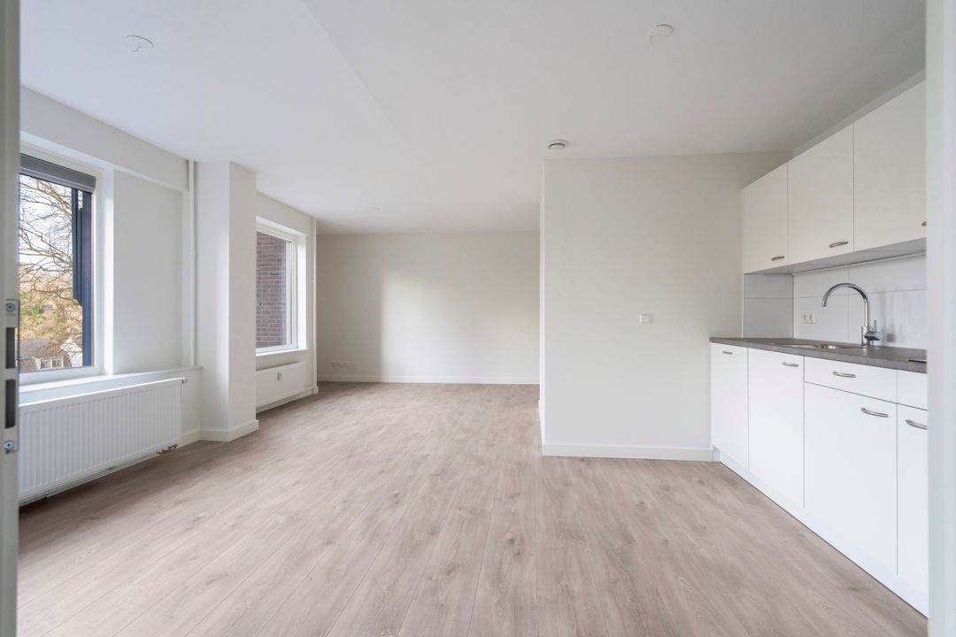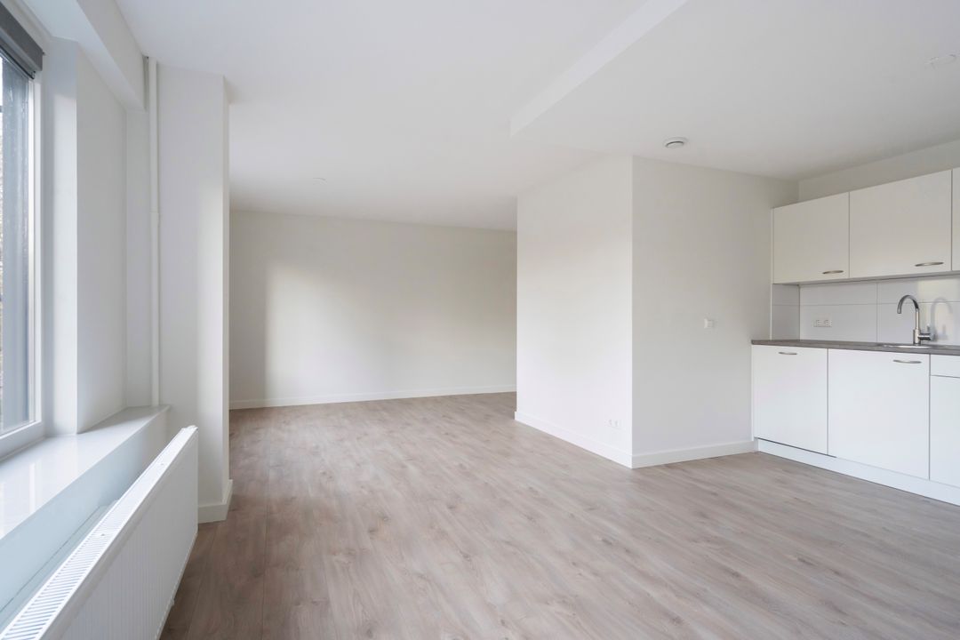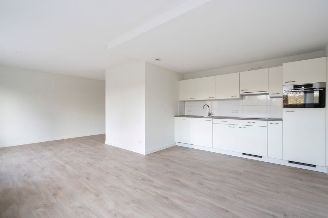 Mooi driekamer appartement voorzien van een ruime woonkamer met open keuken, twee slaapkamers, badkamer met grote douche en wastafel, apart toilet en berging met wasmachine- en drogeraansluiting.