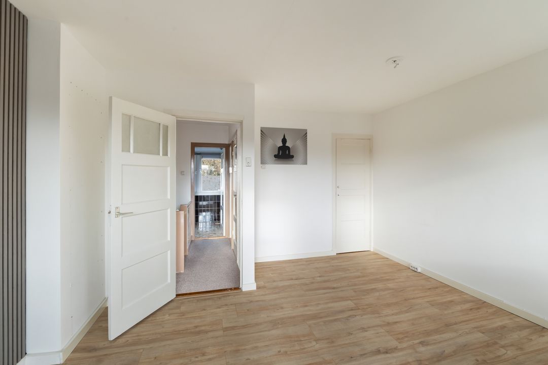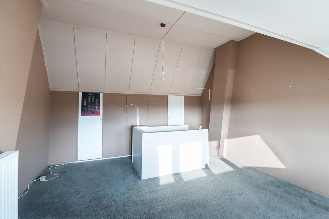 2e verdieping: door middel van een vaste trap naar de verdieping komt u op de tweede etage, door het hoge en brede dakkapel is dit gemaakt tot een grote kamer, mogelijkheid tot het verbouwen naar twee kleinere kinderkamers.