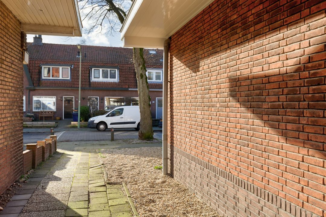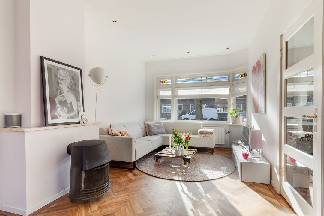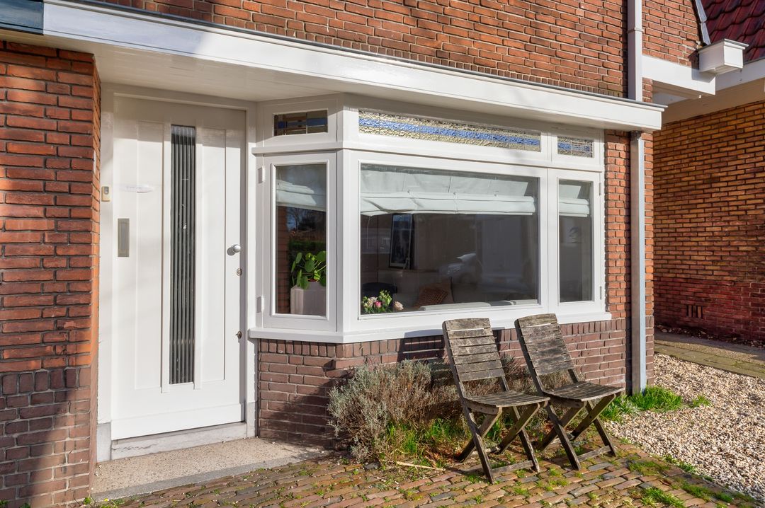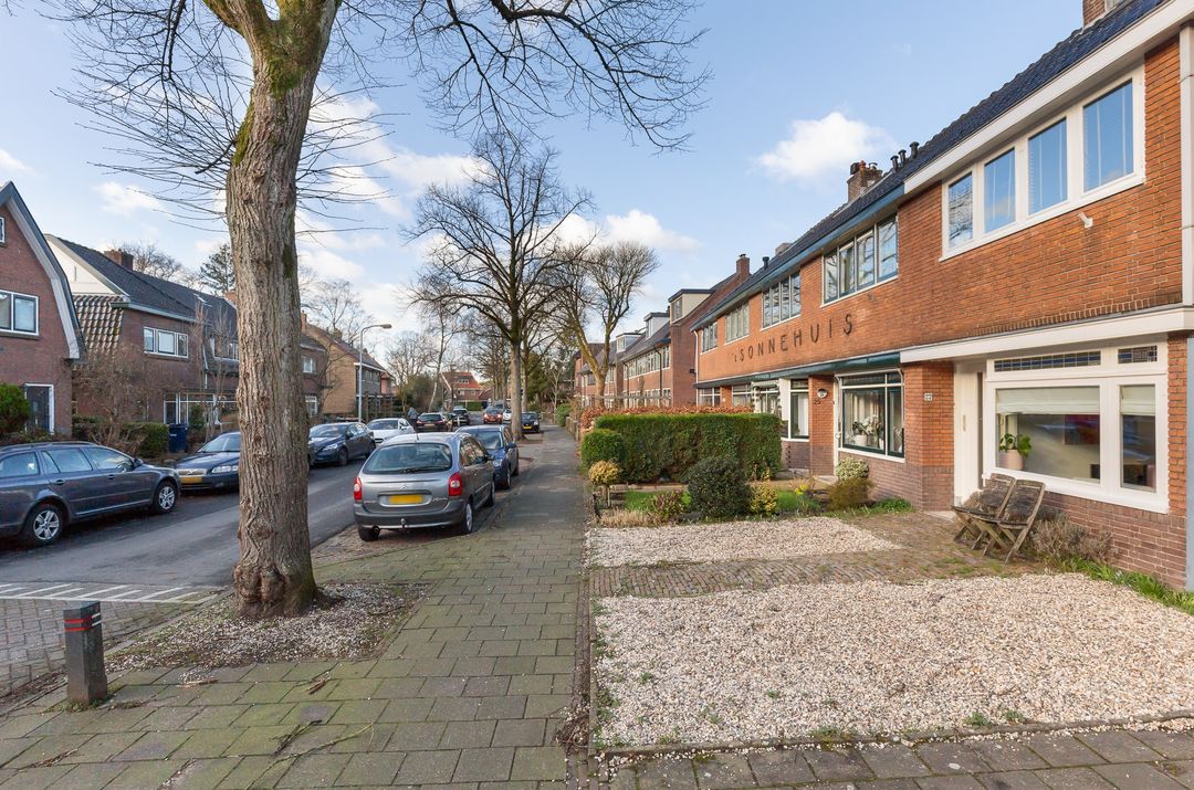 Deze hoekwoning maak deel uit van de rij waar in het verleden de naam ”Sonnehuis” op de gevel is gezet. De woningen hebben de naam te danken door hun ligging waar er opvallend veel zon voor en achter in de woningen schijnt, daarnaast zijn de erkers, in dit rijtje van vijf woningen, breder en is het originele glas- in- lood nog aanwezig.