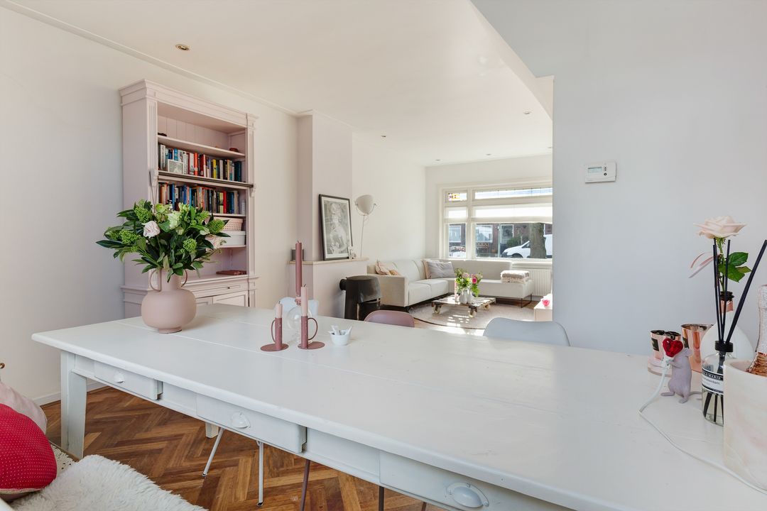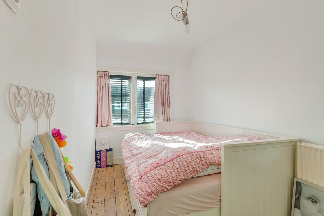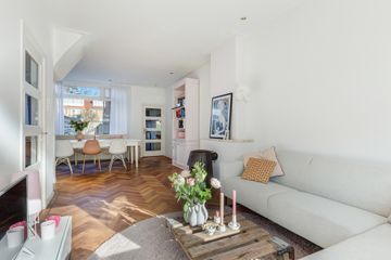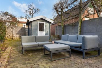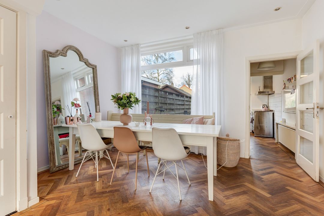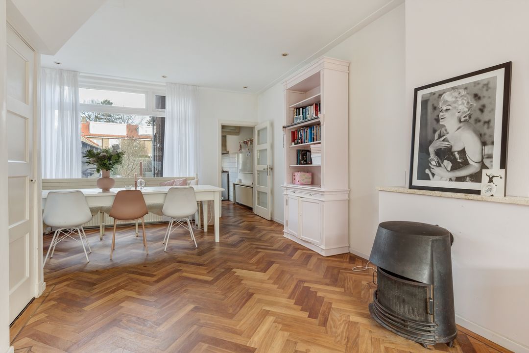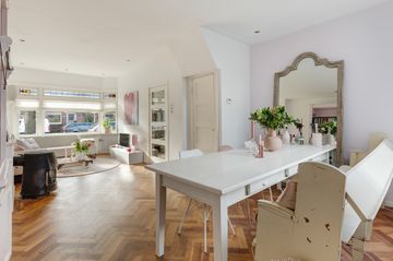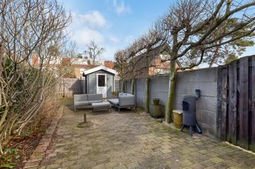 Deze hoekwoning heeft opvallend diepe tuin met vrijstaande houten schuur, de houten vloer met houtkachel maakt het geheel compleet en authentiek.