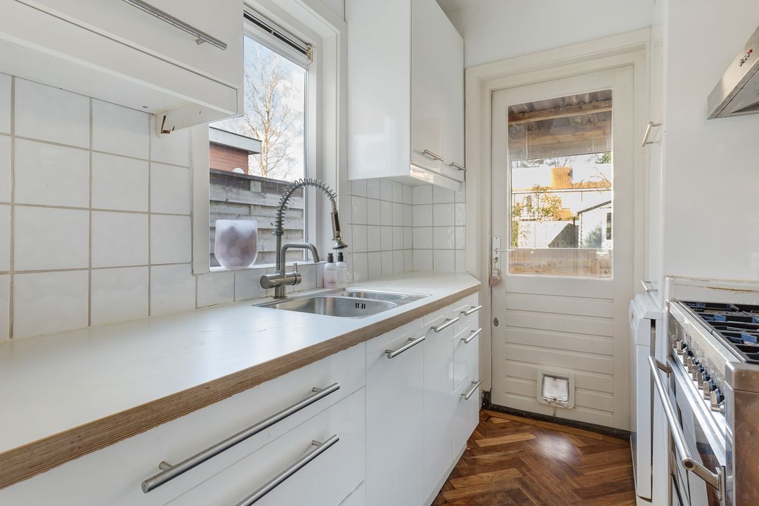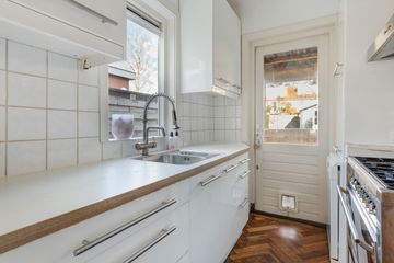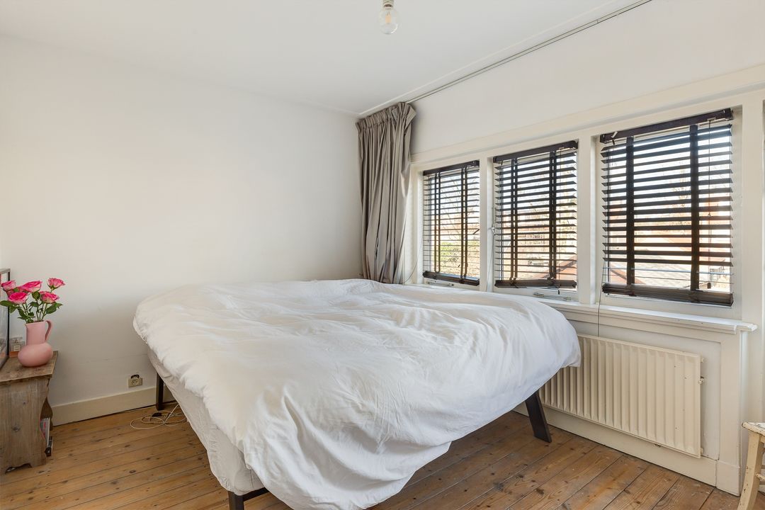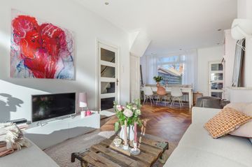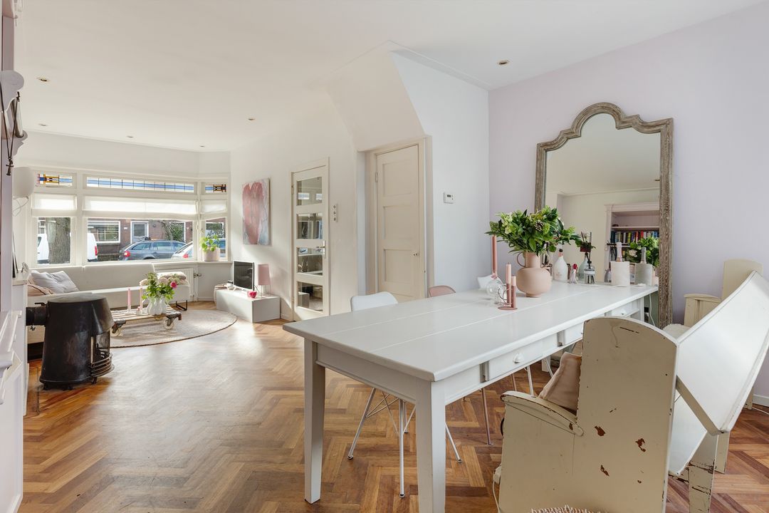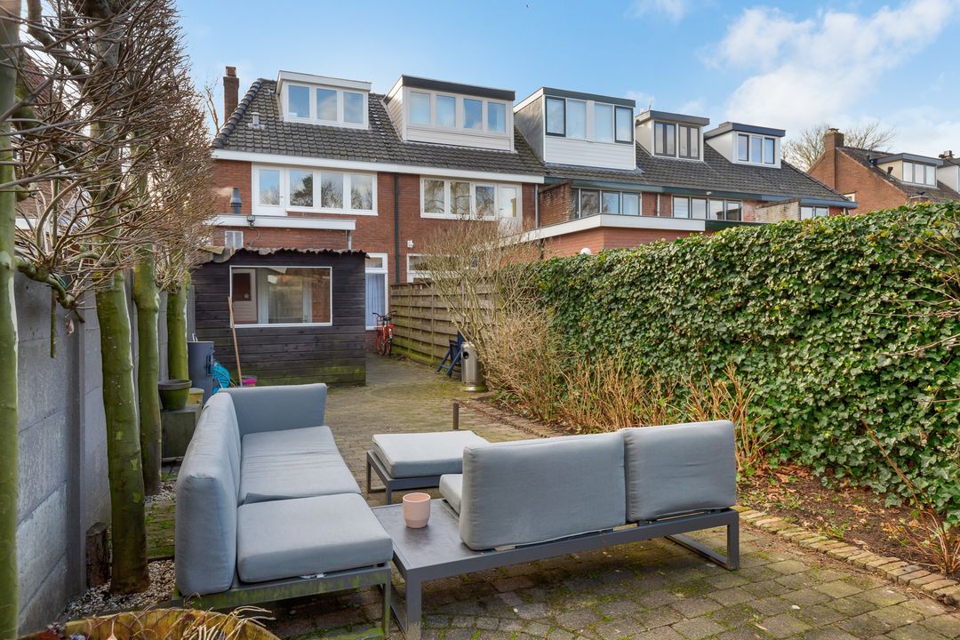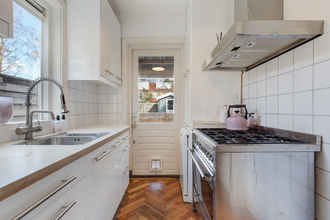 Deze hoekwoning heeft opvallend diepe tuin met vrijstaande houten schuur, de houten vloer met houtkachel maakt het geheel compleet en authentiek.