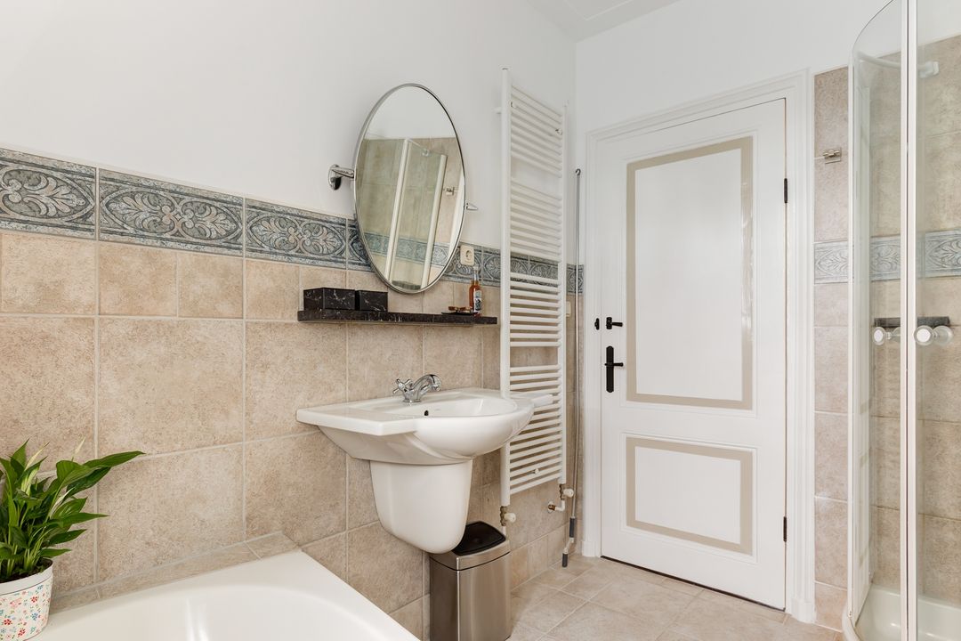 Op de tweede etage bevinden zich via de overloop 3 slaapkamers waarvan de master bedroom toegang heeft tot het balkon gelegen op het Zuid Westen en voorzien van een zonwering, een badkamer met ligbad, douche, toilet en wastafel.