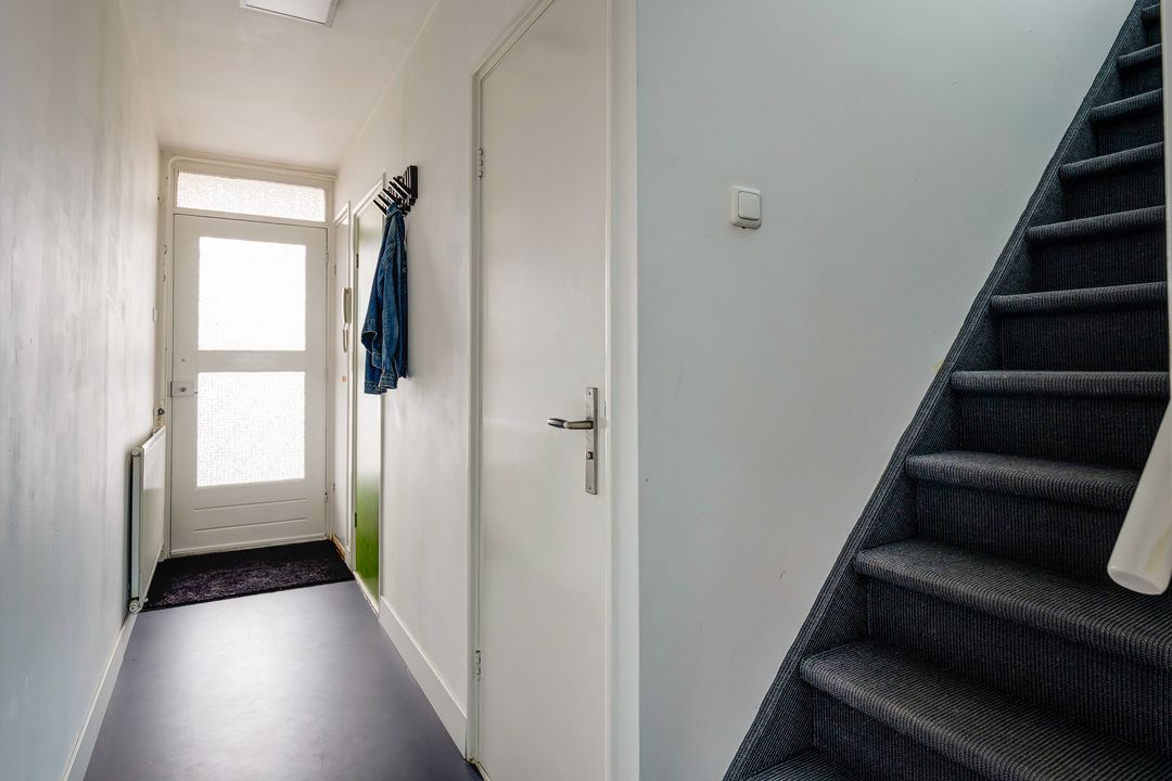 Entree, hal voorzien van lambrisering, meterkast, toilet en trap naar de tweede verdieping. De keuken is voorzien van de nodige inbouwapparatuur, zoals een 4 pits gasfornuis, rvs-afzuiger, vaatwasser, koelkast, vriezer en combi-magnetron. In de hal/trapkast bevindt zich tevens de C.V.-ruimte met een aansluitpunt voor de wasmachine.