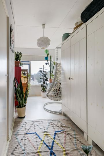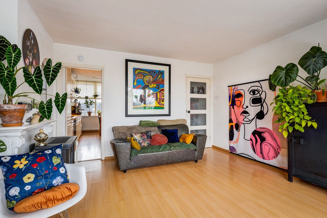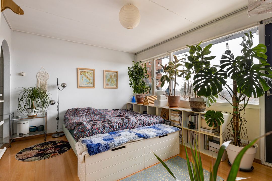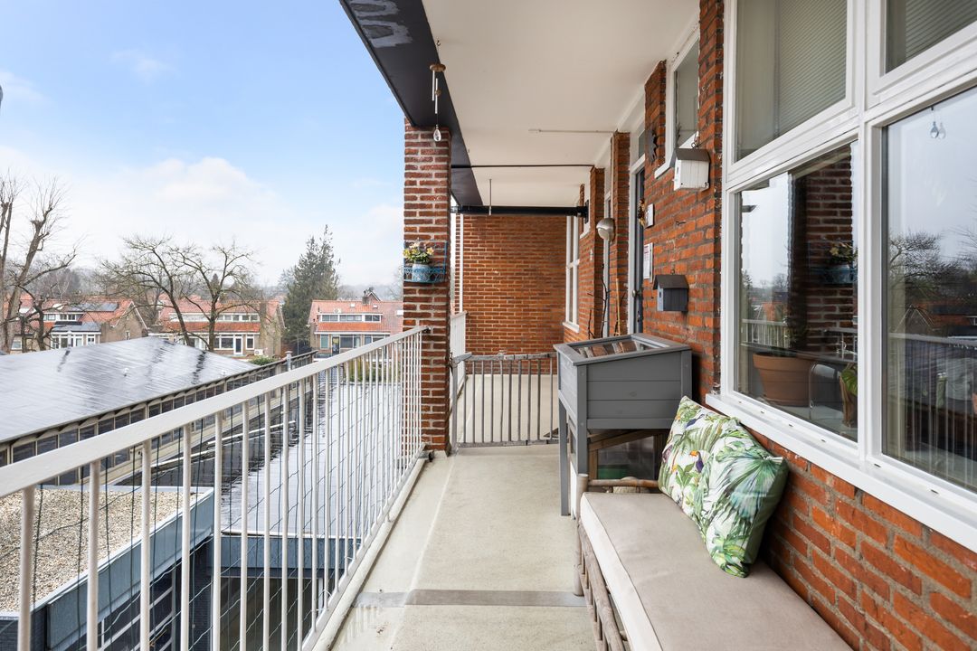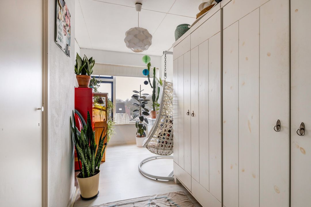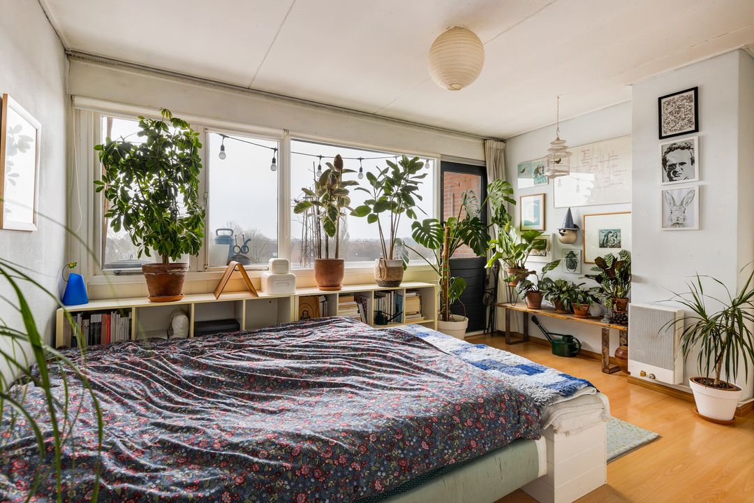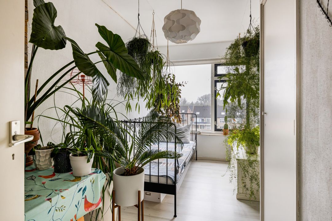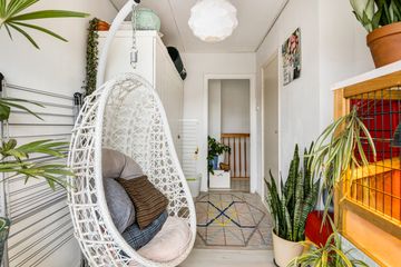 Vierde verdieping: te bereiken door middel van een trap. Overloop met toegang tot de drie slaapkamers waarvan twee slaapkamers (beide met inbouwkasten) aan de achterzijde zijn gelegen. De ruime lichte slaapkamer aan de voorzijde heeft een balkon met een leuk vrij uitzicht over de dichterswijk. De badkamer is via deze kamer bereikbaar en voorzien van een douche en wastafel.