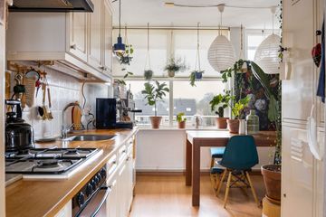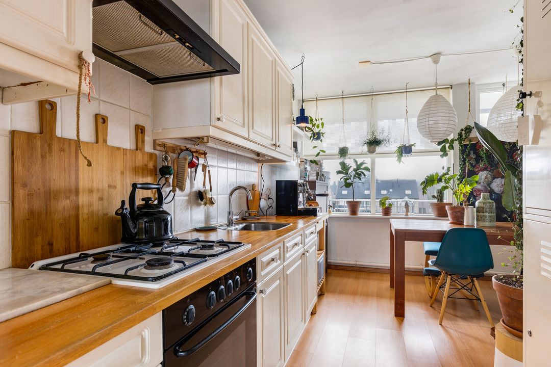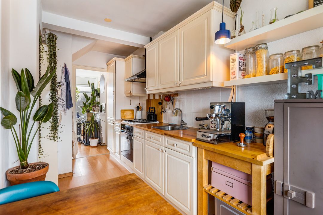 Derde verdieping: entree, moderne meterkast met nieuwe groepenkast voorzien van aardlekschakelaar en hoofdschakelaar. Woonkeuken. Keuken is voorzien van een ruim aanrechtblad 4 pits gastoestel en diverse inbouwapparatuur en aansluiting voor een wasmachine. Ruime, lichte woonkamer voorzien van een schouw met gezellige HR-gaskachel. Woonkamer is afgewerkt met spachtelputz.
