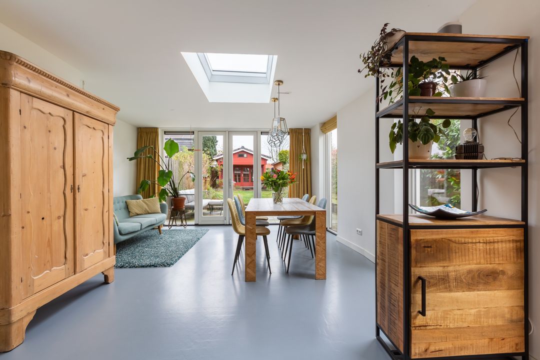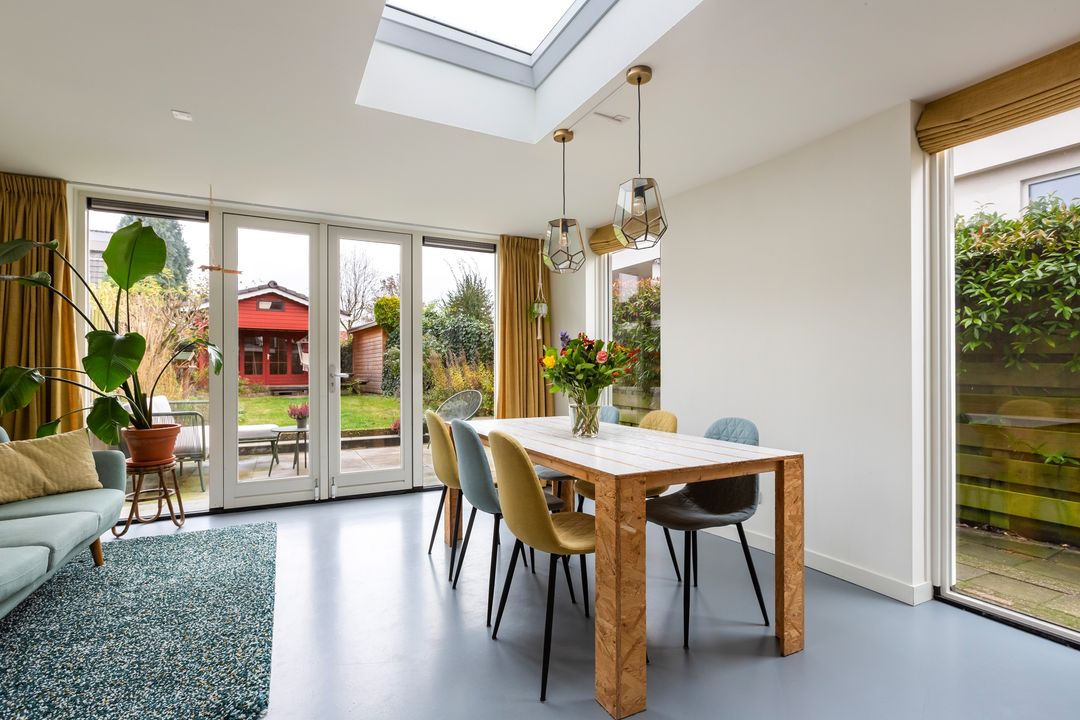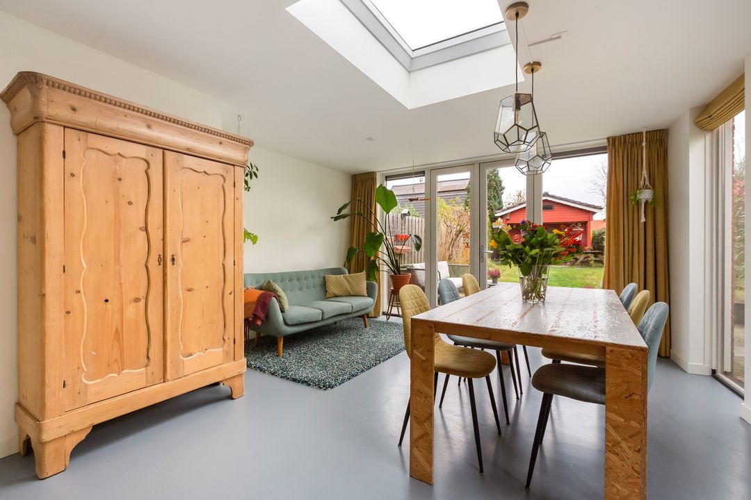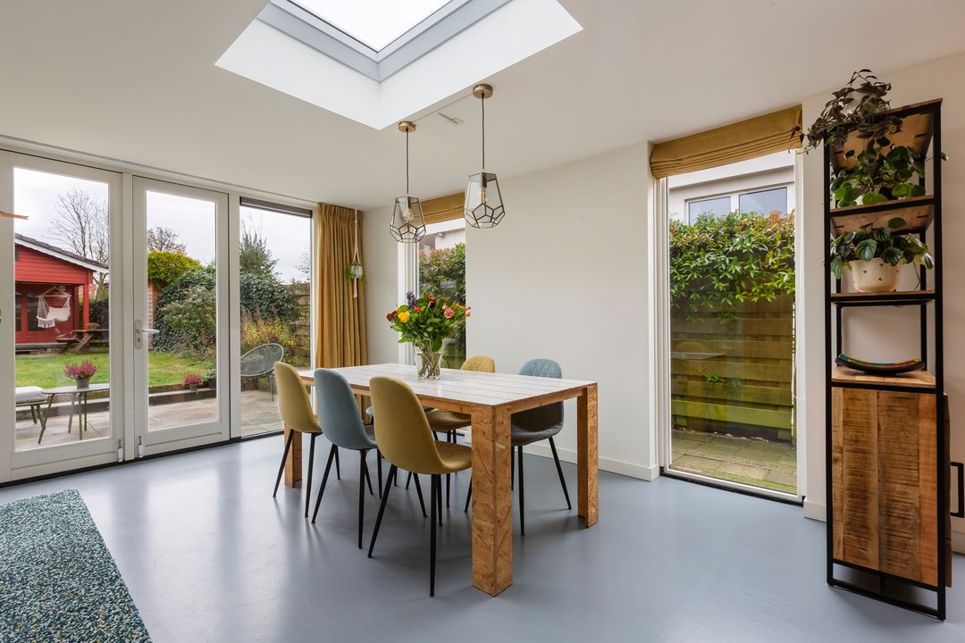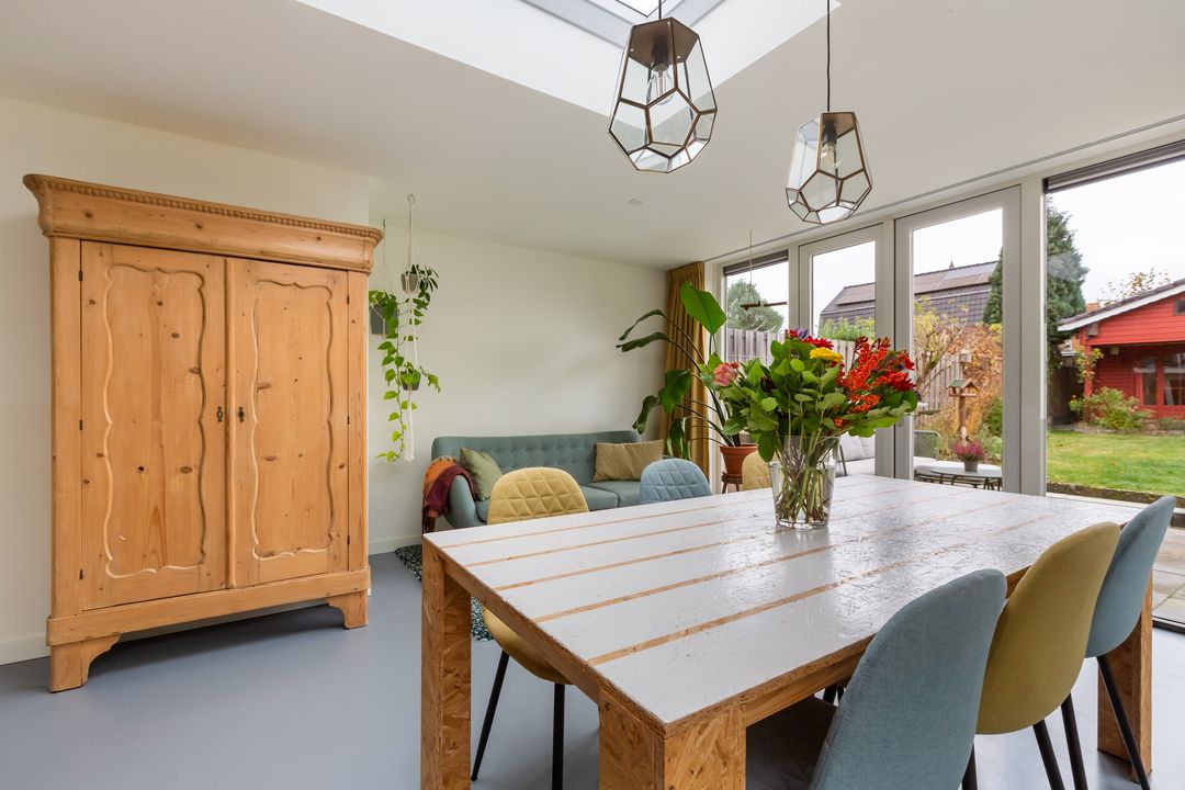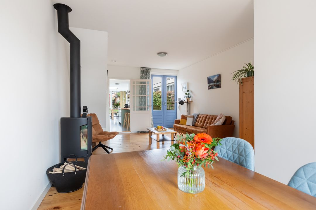 Met de openslaande deuren naar de tuin maakt het tot een groot warm geheel.