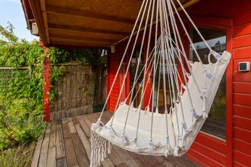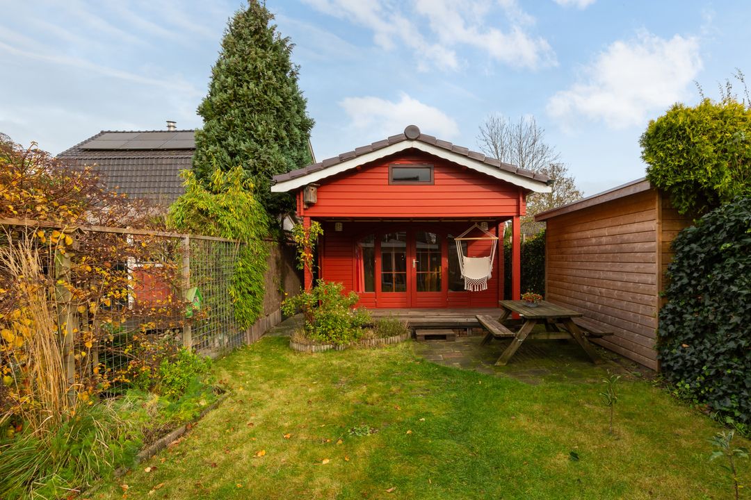 Het sfeervolle tuinhuis doet nostalgisch aan met veranda op de avondzon!