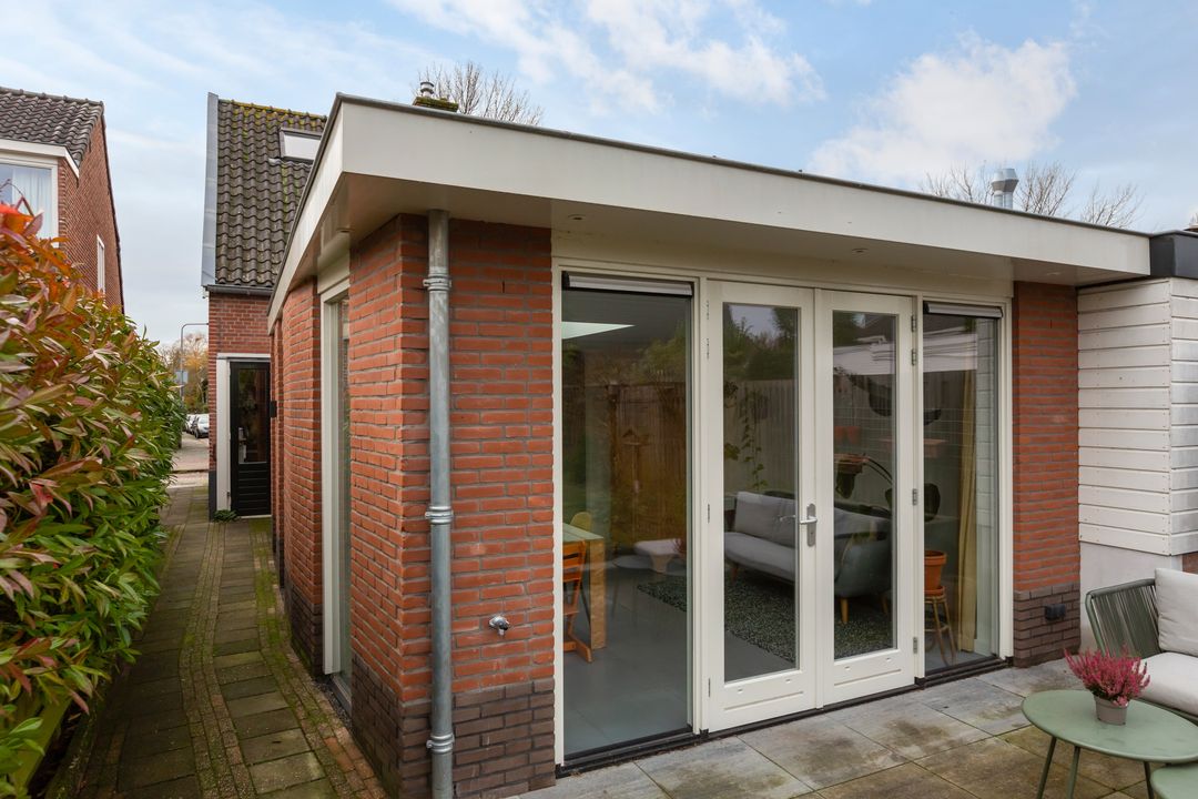 Openslaande deuren naar de tuin en extra deur naar de zijkant.