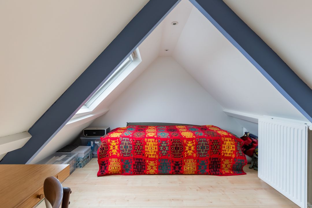 Vaste trap naar de tweede verdieping waar overigens in tegenstelling van de NEN meting hier prima een slaapkamer gemaakt kan worden en zo ook de woonoppervlakte vergroot kan worden.