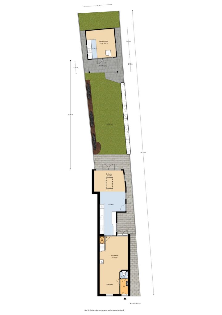 De tuin is te bereiken via een gedeeltelijke zijopgang, dit is ideaal voor tuinonderhoud.