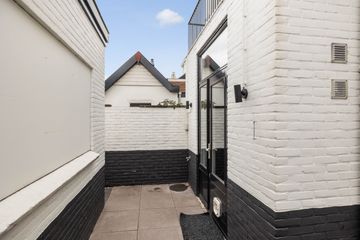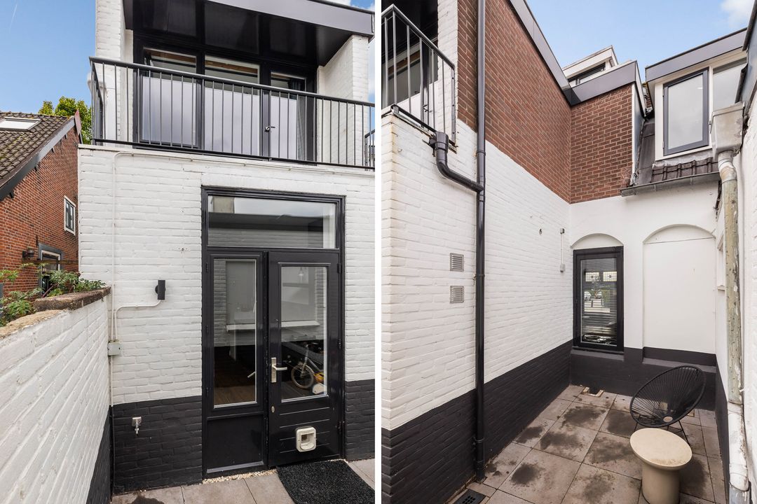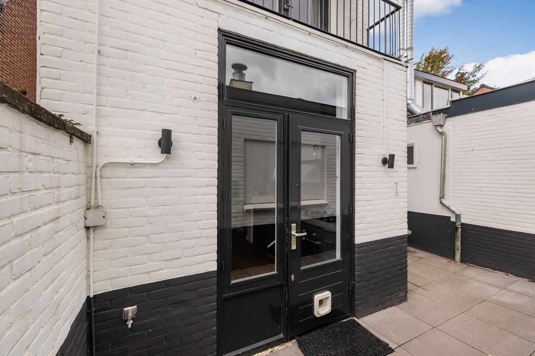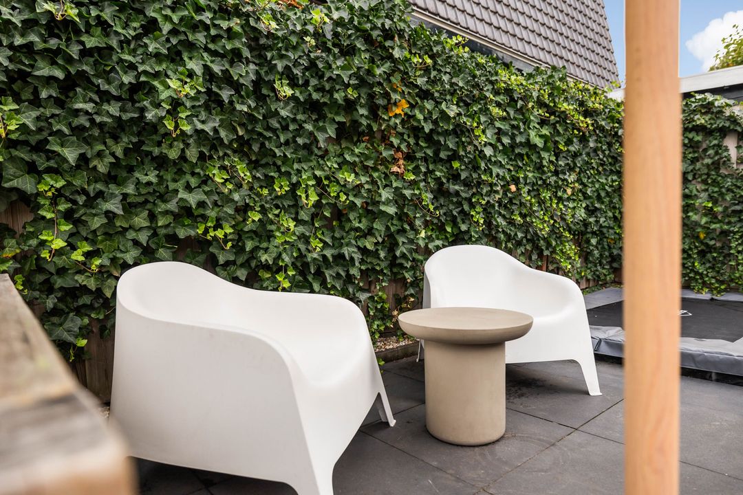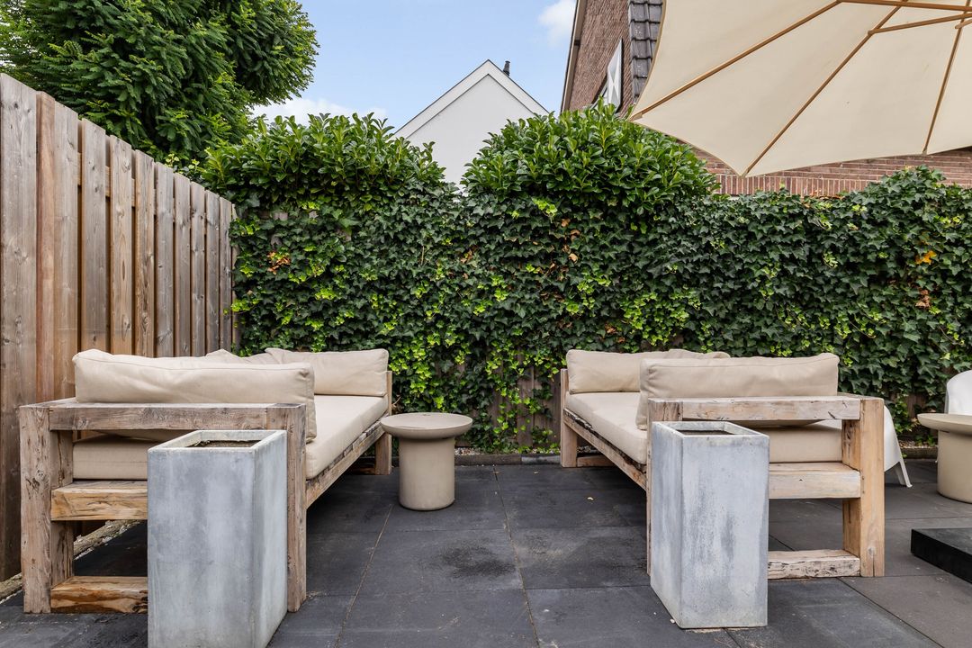 Via de keukendeur komt u op de binnenplaats met een looppad achter de bebouwing langs naar de Hortensialaan, daar bevindt zich de royale tuin met eigen parkeerplaats en grote houten schuur /berging.