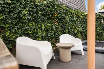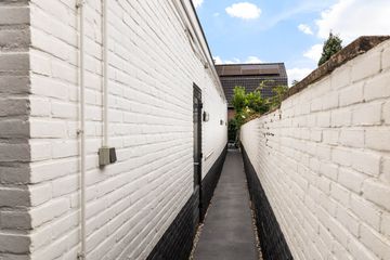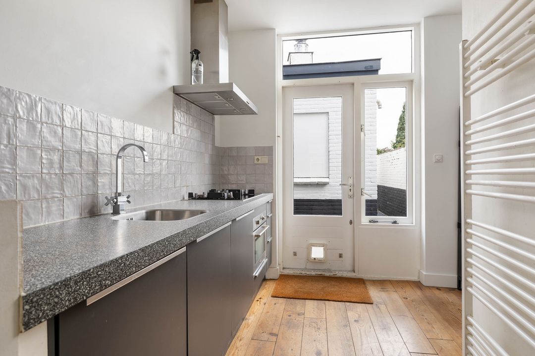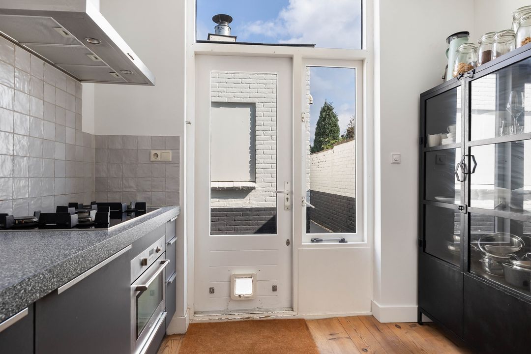 Vanuit de keuken is de binnenplaats te bereiken met een doorgang naar de tuin aan de Hortensialaan.