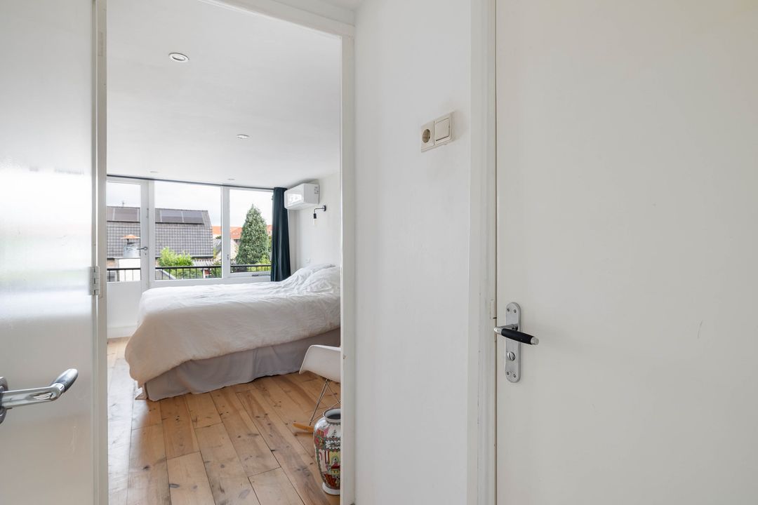 Aan de achterzijde bevindt zich de ruime ouderslaapkamer met deur naar het balkon.