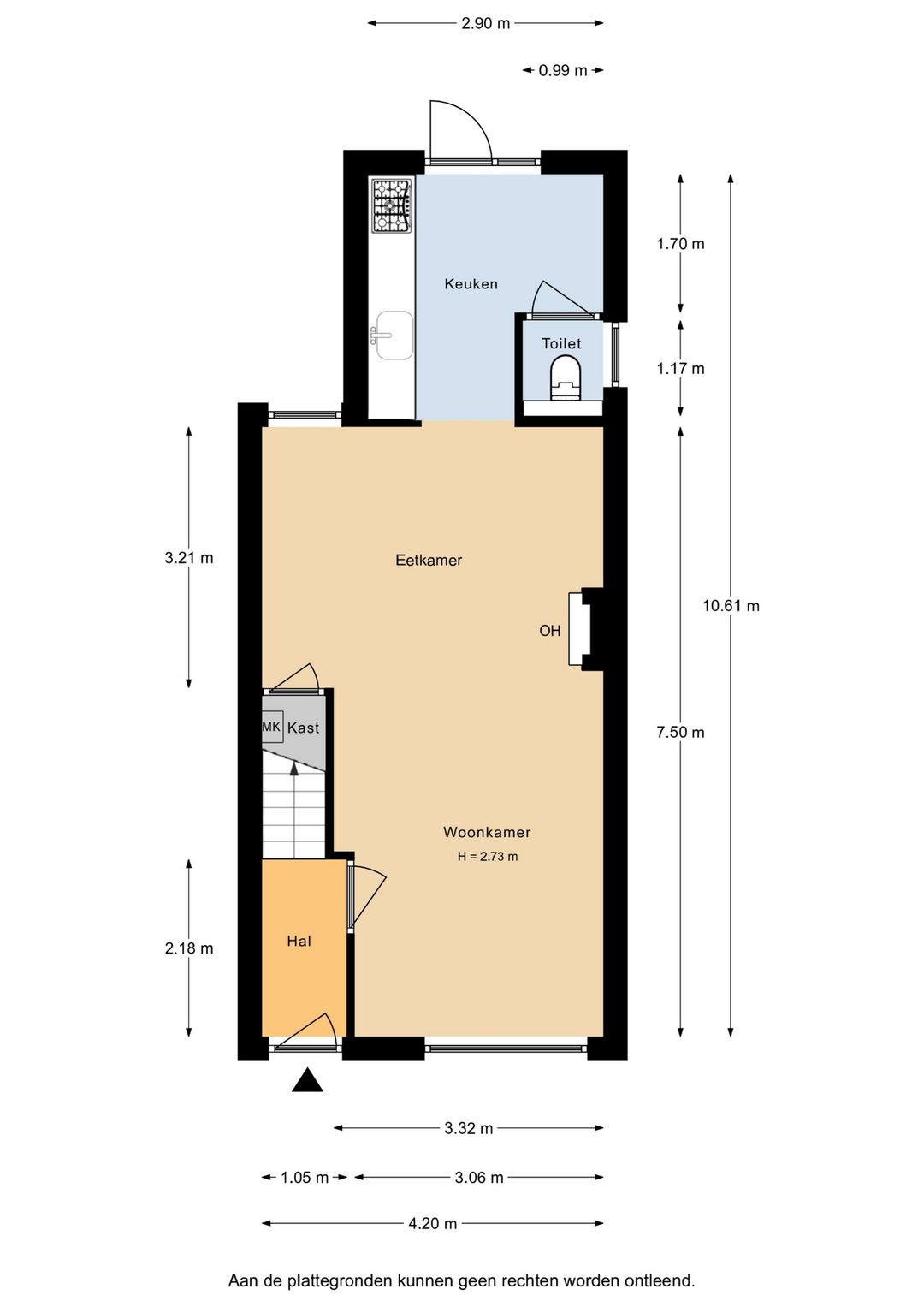 Het toilet op de begane grond is naast de keuken.