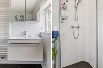 1e verdieping : Overloop, drie slaapkamers, badkamer met douche en wastafel