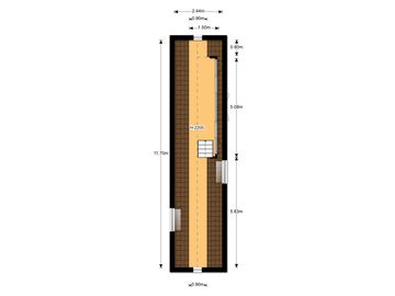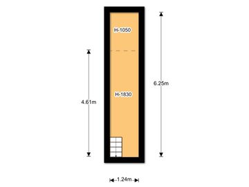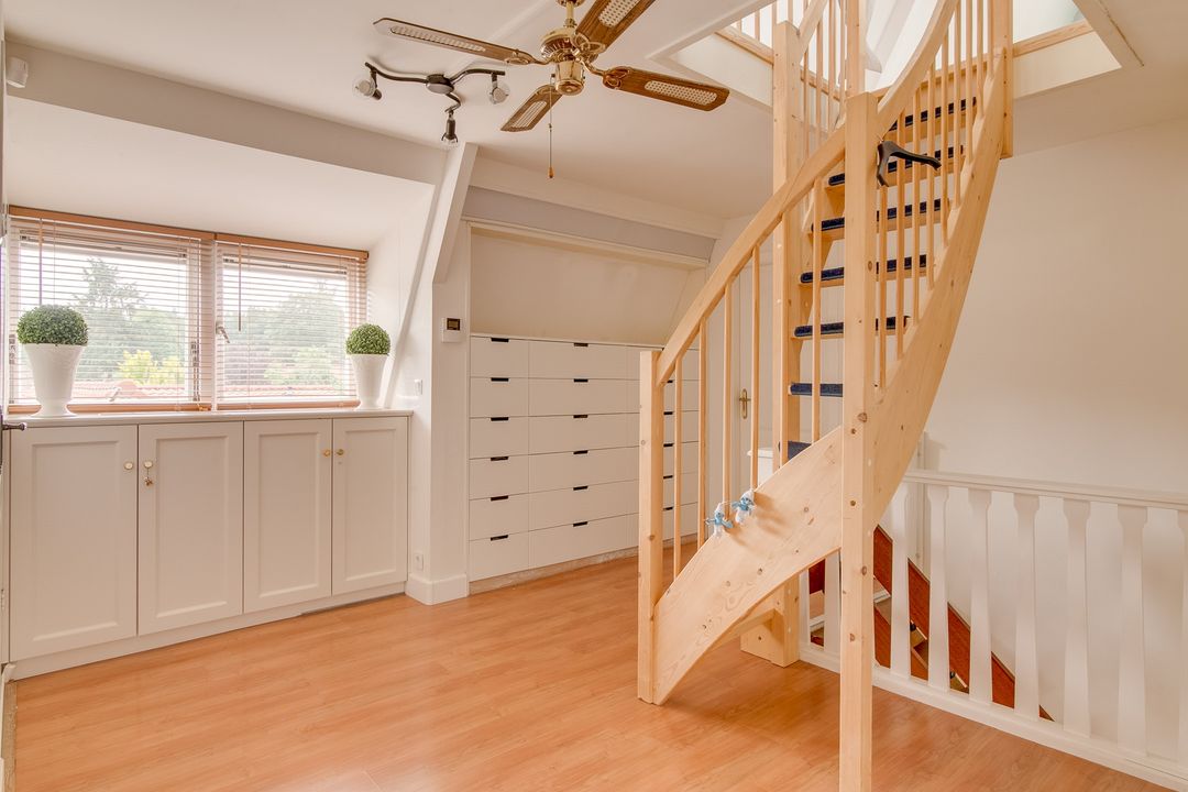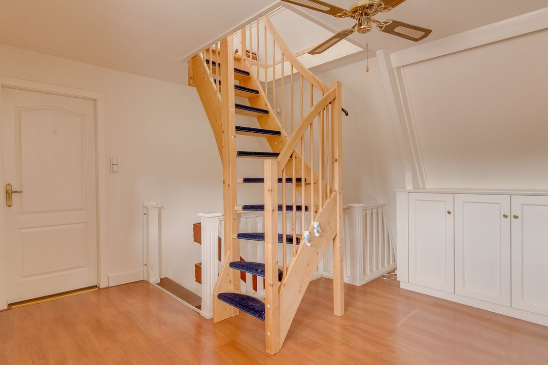 Trap komt uit in een klein separaat appartement met eigen badkamer en kookvoorziening.