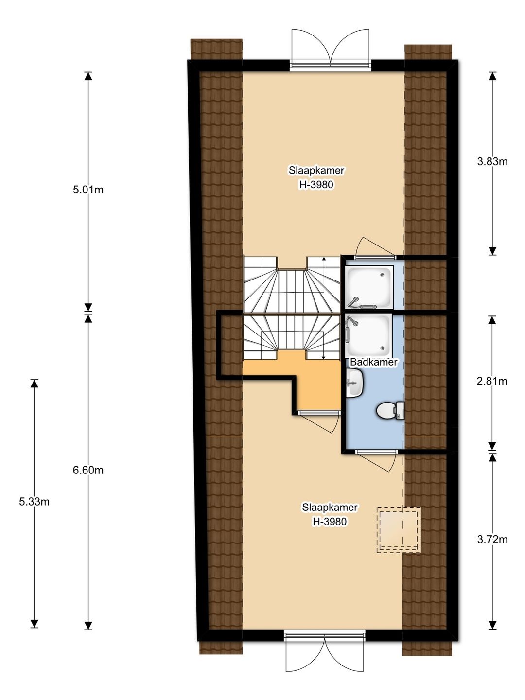 Ruime kamer in de lengte van het huis met diverse dakramen en 1 dakkapel