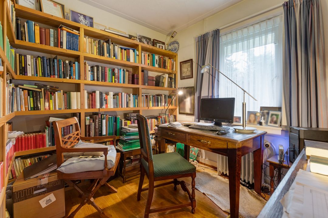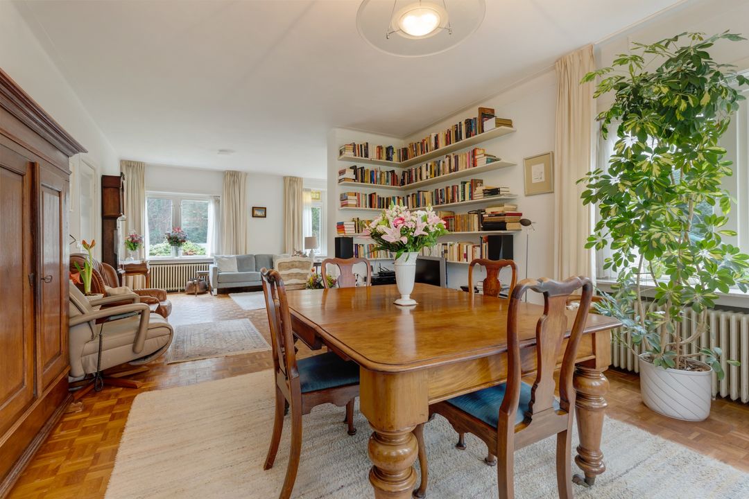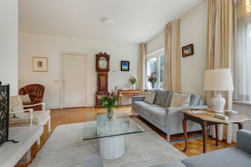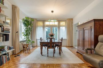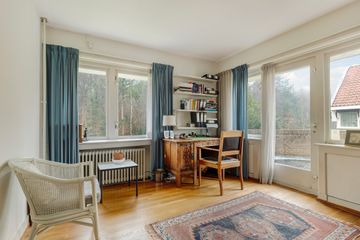 In het fraaie Lyceumkwartier ligt tegenover het uitgestrekte Zeister bos deze ruime linkerhelft van een dubbele villa uit de jaren 30. De woning is gedateerd maar goed onderhouden en heeft een sfeervolle woonkamer met ronde serre en open haard Rondom de woning ligt een riante, vrije tuin met parkeergelegenheid op eigen terrein met vrijstaande stenen garage (ongeveer 20 m2) en schuur met aparte ingang ( ongeveer 5 m2). Rond de woning ligt een riante tuin met diverse terrassen waardoor je altijd van de zon of juist van de schaduw kunt genieten.