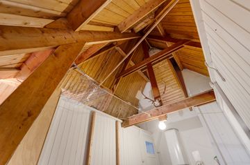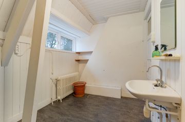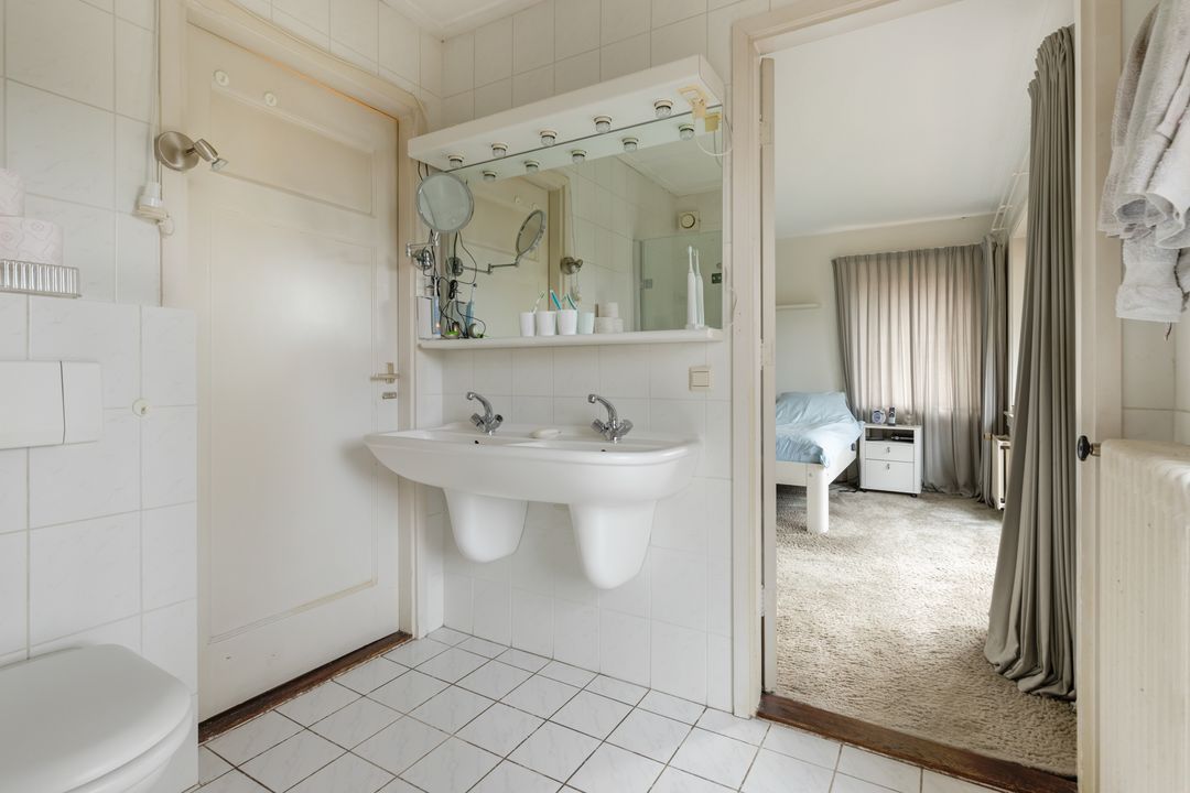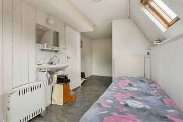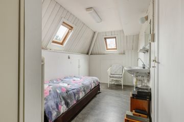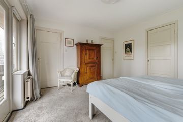 Eerste verdieping: overloop voorslaapkamer met deur naar het ronde balkon boven de serre, achter-slaapkamer v.v. openslaande deuren naar het balkon met doorgang naar de badkamer v.v. bad, douche en dubbele wastafel en een deur naar het balkon. Aan de voorzijde een derde slaapkamer, vanuit de hal bereikbaar een toilet met extra douche en wastafel, deur met vaste trap naar de tweede verdieping. Hier komt u op een zeer grote originele zolder ( ± 46 m2 ) met vele mogelijkheden zoals bijvoorbeeld twee slaapkamers met extra badkamer behoort met gemak tot de mogelijkheden. Ook een ruime vliering boven de tweede verdieping is geen enkel probleem .