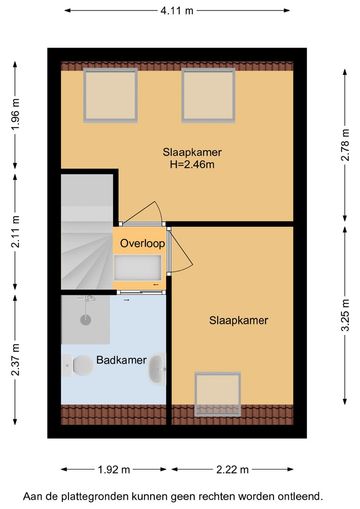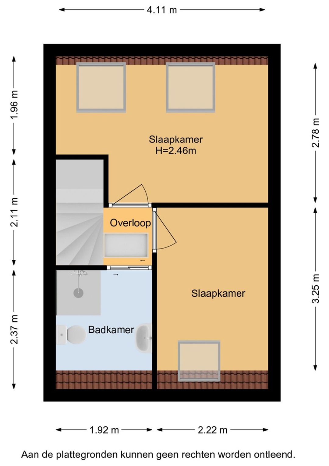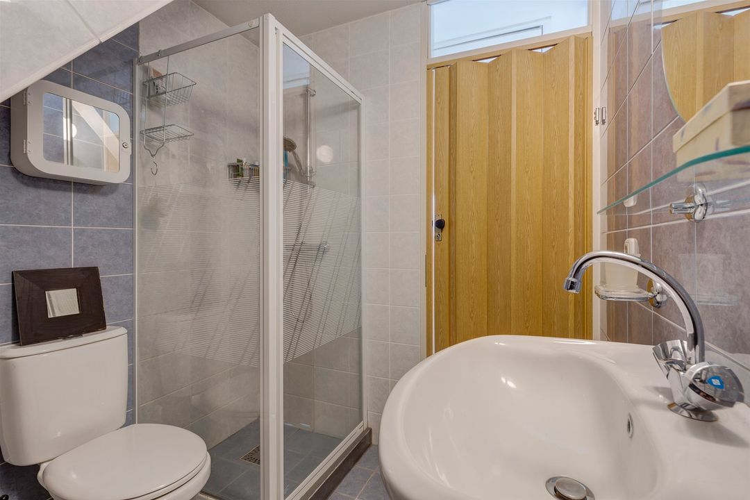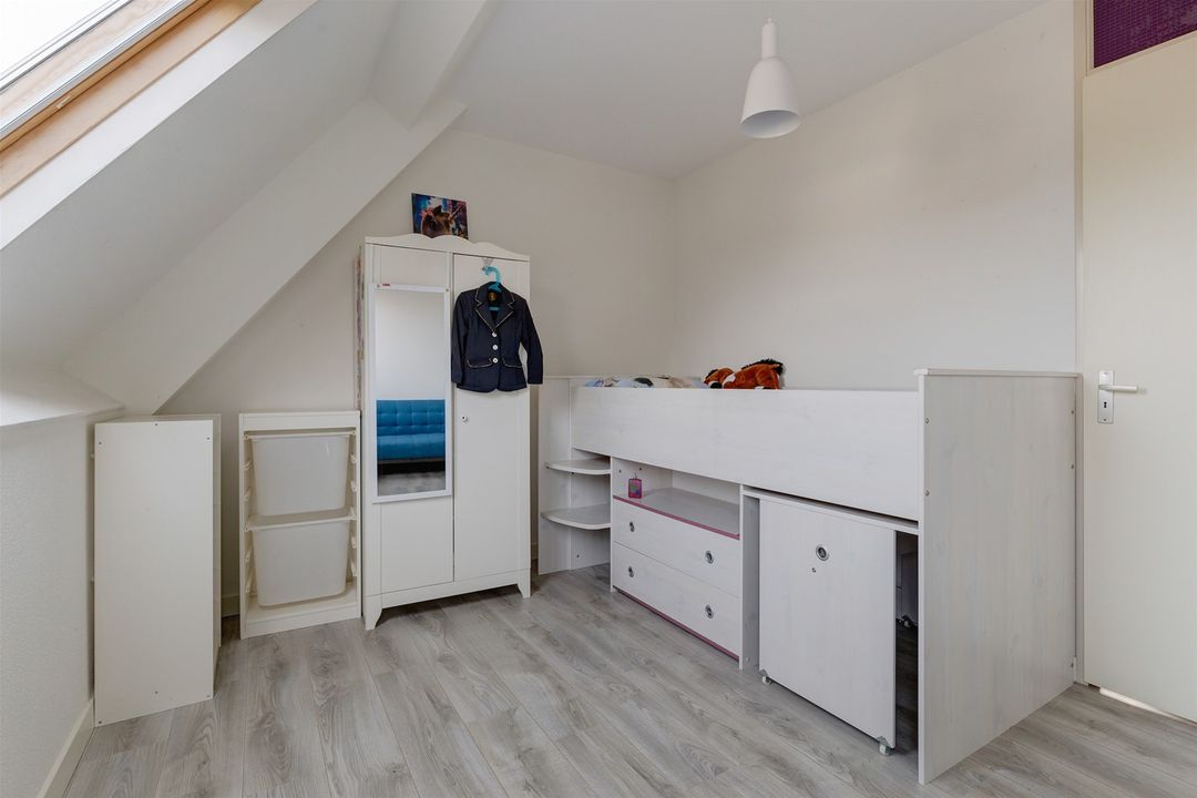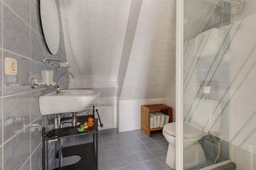 Door middel van een vaste trap in de woonkamer komt u uit op de eerste verdieping waar twee ruime slaapkamers gesitueerd zijn, een badkamer met douche, toilet en wastafel. Via een vlizotrap bereikt u de ruime zolder met een nokhoogte van 2.07 meter.