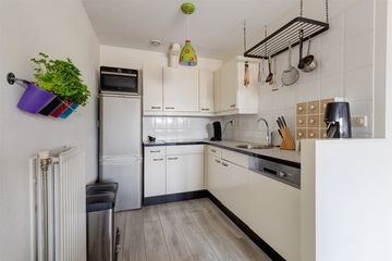 Entree, hal, toilet, meterkast, woonkamer, vanuit de woonkamer komt u door middel van openslaande deuren uit op de loggia en deze is te combineren met binnen en buiten. Er is een open keuken aanwezig met diverse inbouwapparatuur en inductiekookplaat.