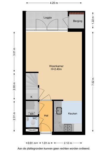 Deze maisonnette heeft een totale gebruiksoppervlakte van 65 m2, dit is inclusief gebouw gebonden buitenruimte 3,6 m2 (de loggia).