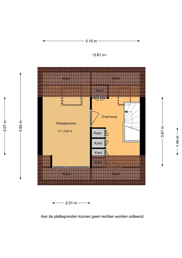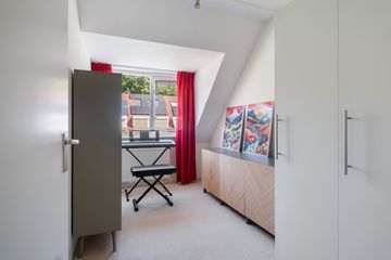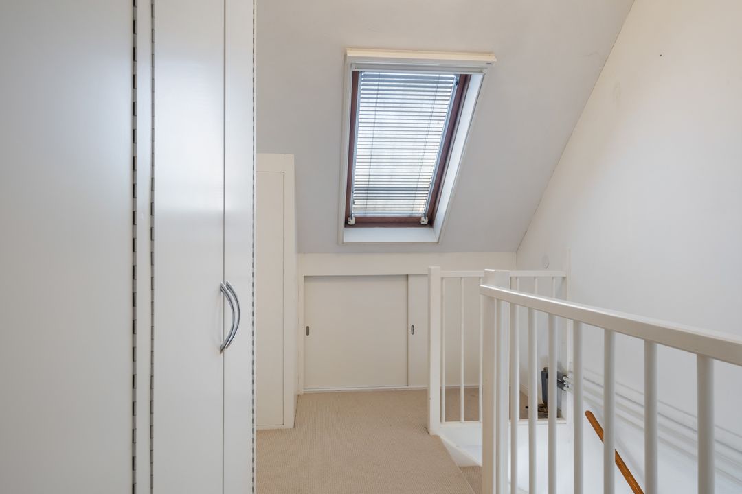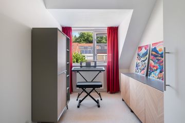 Grote zolderkamer met dakkapel aan de voorzijde en dakraam aan de achterzijde. Praktische berging met inbouwkasten, opstelplaats voor wasmachine/droger en CV-ketel.