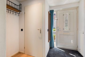Entree/hal, modern toilet, lichte woonkamer met grote raampartijen en toegang tot de achtertuin. Luxe open keuken uit 2019, voorzien van diverse inbouwapparatuur en uitgevoerd in moderne kleurstellingen. Door een slimme toepassing hebben verkopers gezorgd voor extra opbergruimte in de provisiekast.