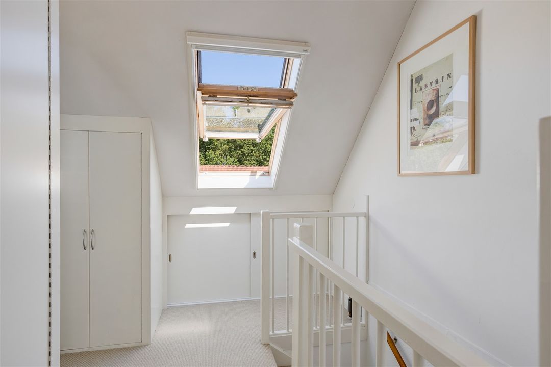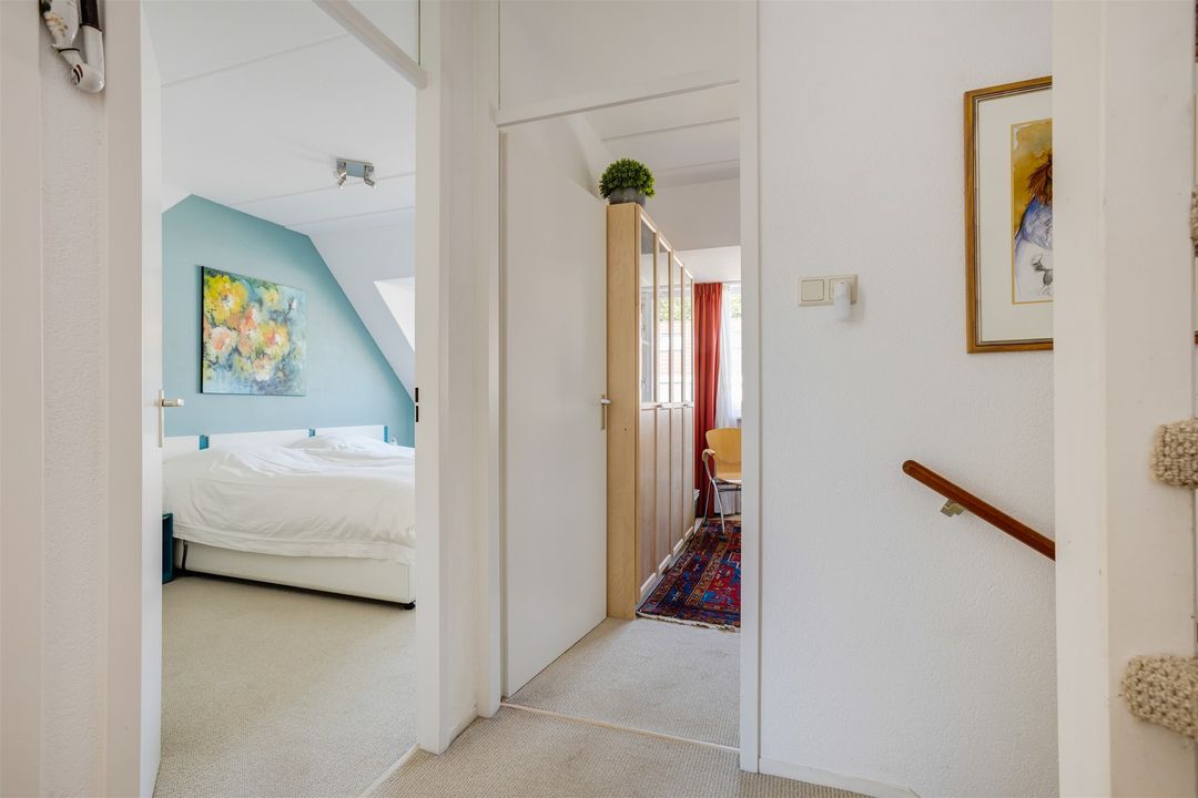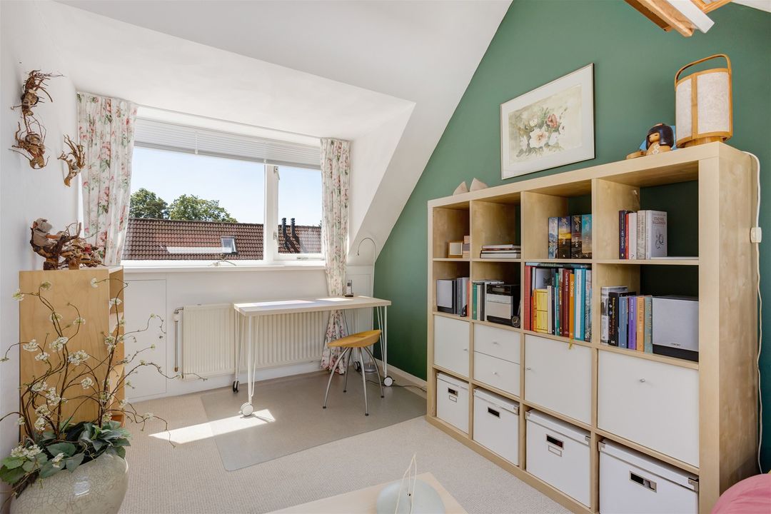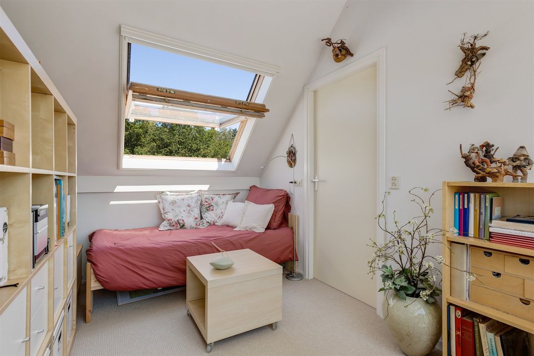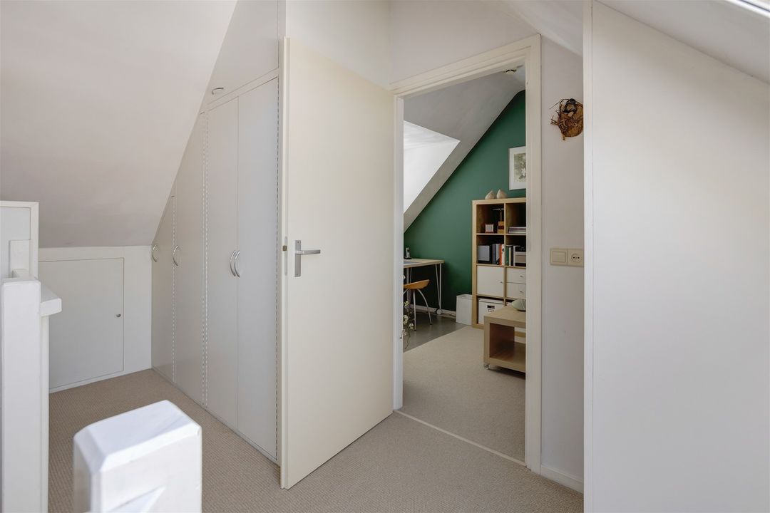 Zolderkamer met dakkapel aan de voorzijde en een dakraam aan de achterzijde. Ruime berging met inbouwkasten, ruimte voor wasmachine en droger, cv ketel van het merk Nefit uit 2006.