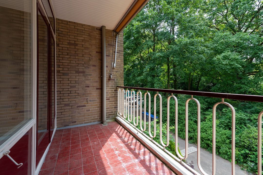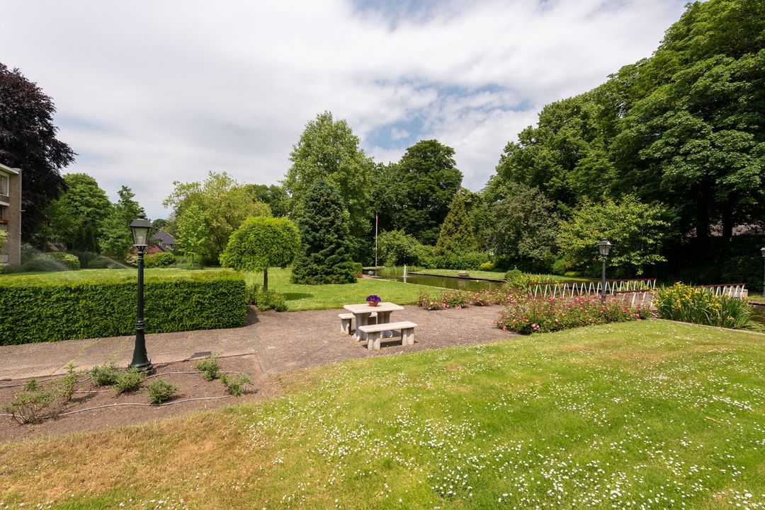 Ruime sfeervolle L-vormige woonkamer met elektrische openhaard en openslaande deuren naar het balkon met uitzicht over het groen. De woonkamer heeft een fraai uitzicht over de schitterende tuin met waterpartij, keuken, Vanuit de keuken heeft u toegang tot het kleine balkon aan de achterzijde.