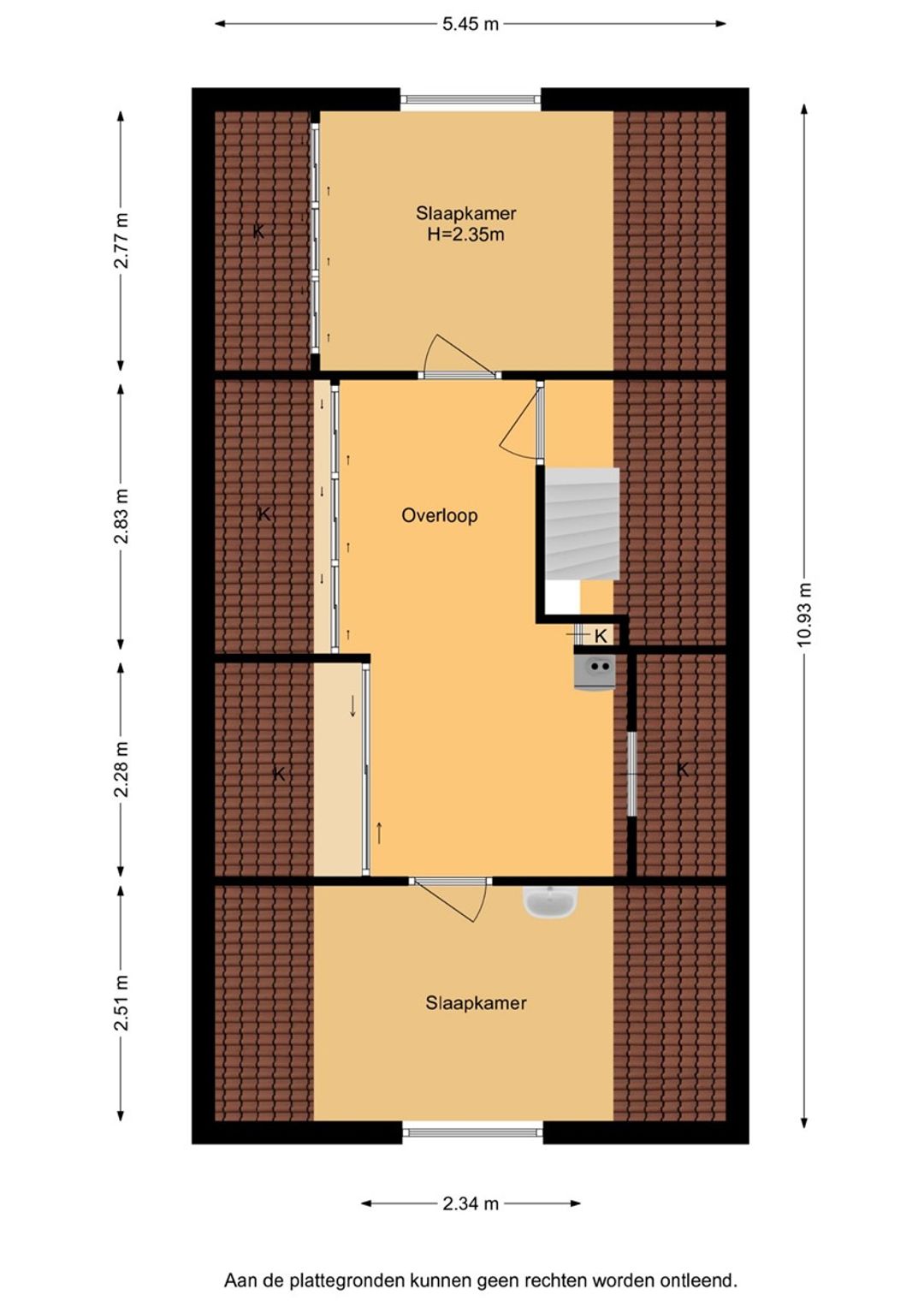 Overloop met veel kastruimte 2 slaapkamers waarvan 1 aan de voorzijde en 1 aan de achterzijde van de woning. Er is een mogelijkheid om aan beide kanten van de woning een dakkapel te plaatsen