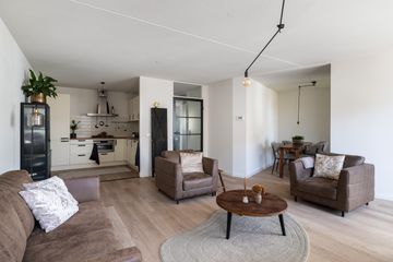 De technische ruimte annex bijkeuken biedt plek voor zowel je wasmachine als droger. De woonkamer zelf is royaal en licht, met 2 verschillende deuren naar het balkon. Door de open keuken blijf je altijd gezellig in contact met je bezoek. Gooi meteen die dubbele elektrische zonwering open, zet de eettafel neer of richt het apart af te scheiden deel in als kantoor of hobbyruimte alles kan, niks moet.