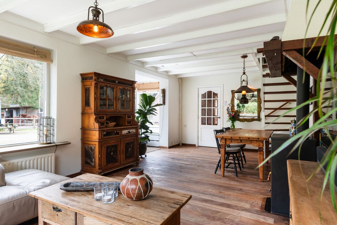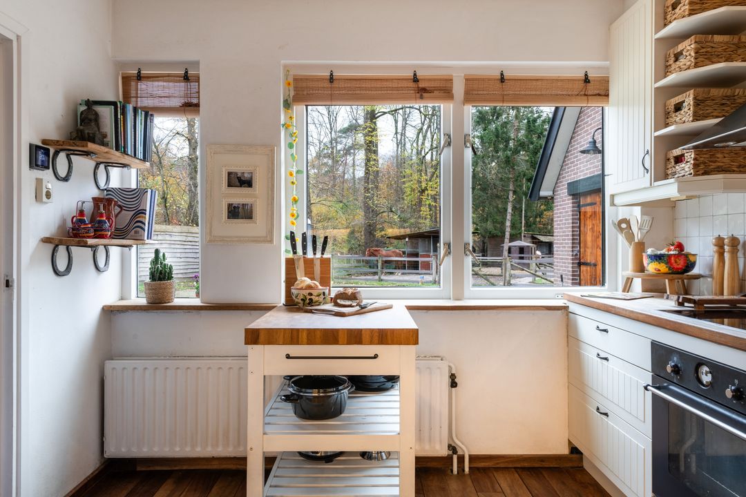 Vanuit de woonkamer, keuken en de bovenverdieping heb je prachtig uitzicht op de paarden.