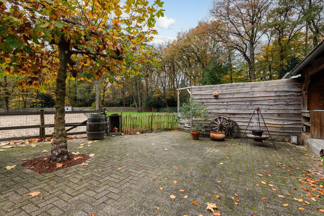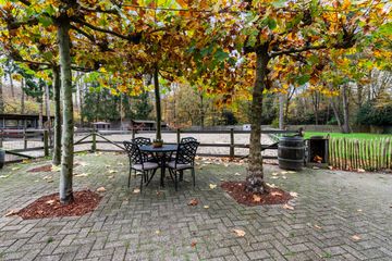 Een sfeervolle patiotuin met mooie platanen, een stoere Saloon met overkapping en een kantoorruimte maken het woongenot voor buiten- en dierenliefhebbers helemaal compleet. Ook voor paarden is dit een heerlijke plek.