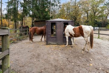 • Stal met een box van 4 x 3 m en een groepsbox van 9 x 3 m, beide met HIT-softbedden en drinkbakken met vorstbeveiliging